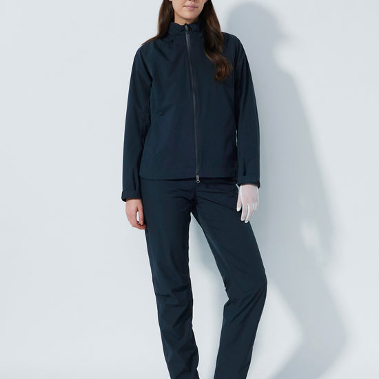 Flaine is a pair of stylish rain trousers with a flexible fit in technical stretch. The trousers have two front zip pockets and a snug fit with spacious legs and Velcro at the hem. The material is water repellent and breathable. The trousers have a soft lining and taped seams to keep moisture out.