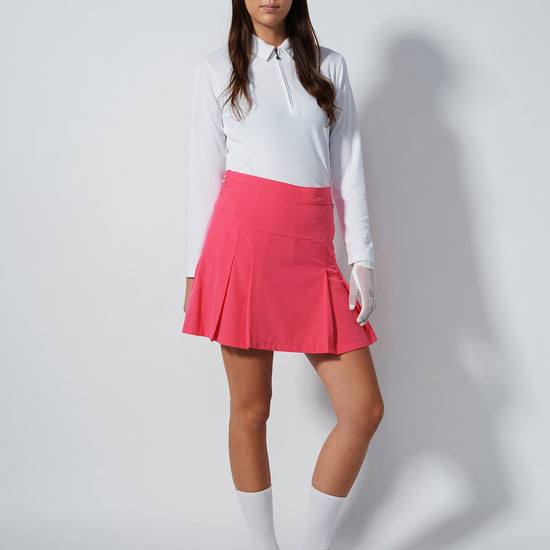 Pescara skort 40 cm is a pleated golf skirt with a feminine cut. It features practical inner shorts, an elastic waist with a side zip and a small front pocket. The skirt is made from a wind- and water repellent lightweight fabric that dries quickly and stays wrinkle-free.
