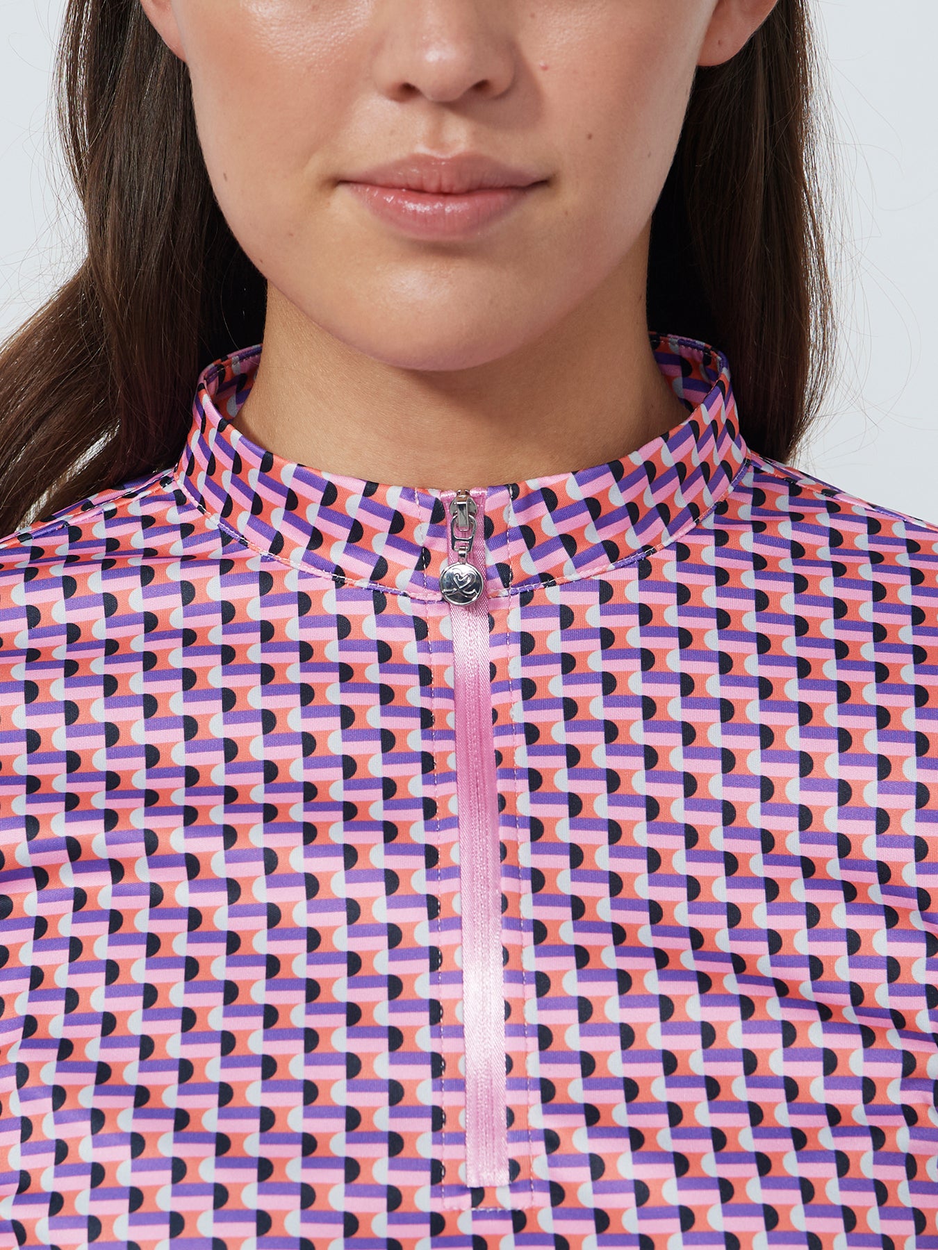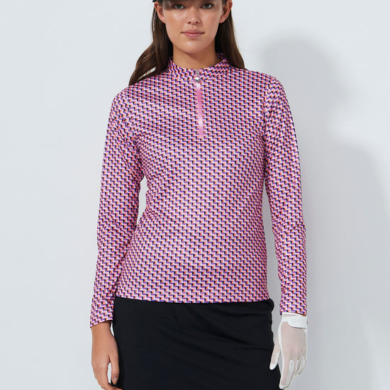 This long-sleeved top is made from recycled polyester with quick-drying, moisture-wicking fabric that ensures effective moisture transportation. The half-zip front and stand-up collar create a clean, sporty look, while the allover print adds a refined, modern feel. A versatile layer for wearing alone or under a jacket on the course.