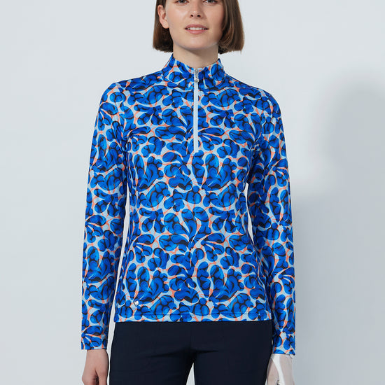This long-sleeved top is made from soft, stretchy fabric with quick-drying, moisture-wicking properties for effective moisture transportation. The half-zip front allows easy ventilation, while a stand-up collar and allover print give it a clean, modern look — perfect for layering on or off the course.