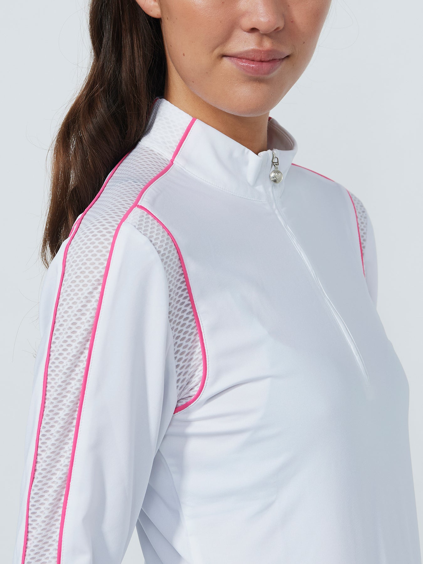 Long sleeves with mesh inserts give this top both ventilation and style. Crafted from stretchy, quick-drying fabric with moisture-wicking properties, it delivers comfort and freedom of movement. A half-zip front, contrast piping, and thoughtful detailing make it a versatile piece for layering.