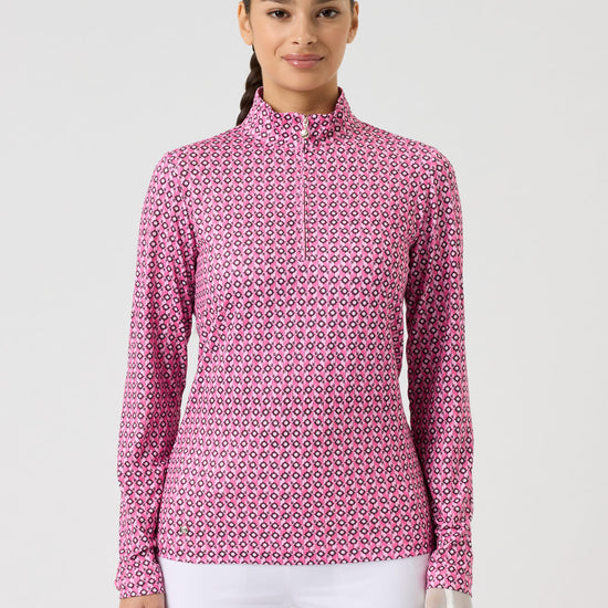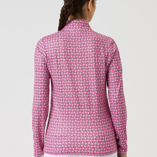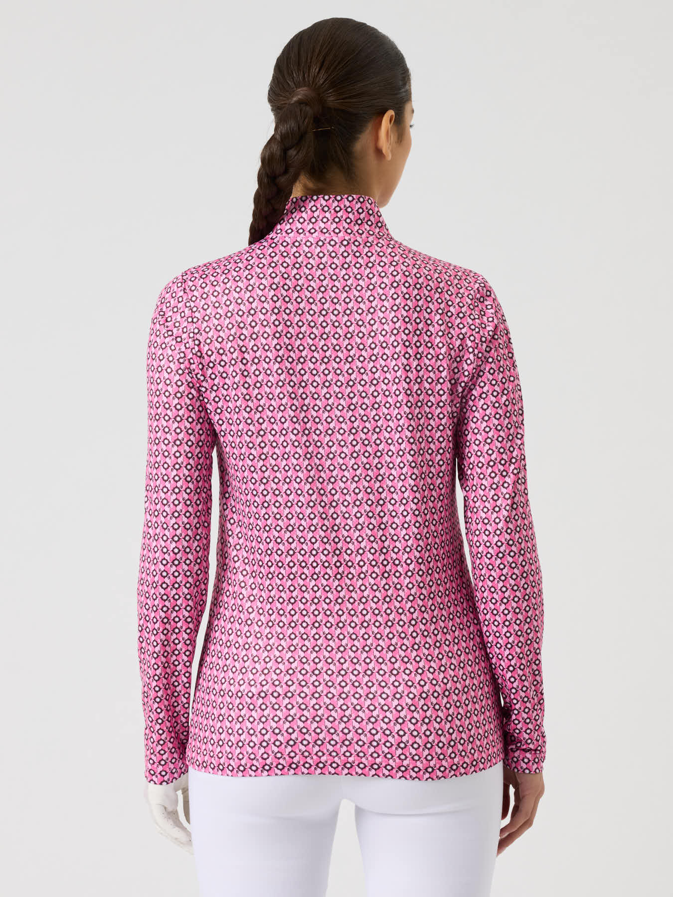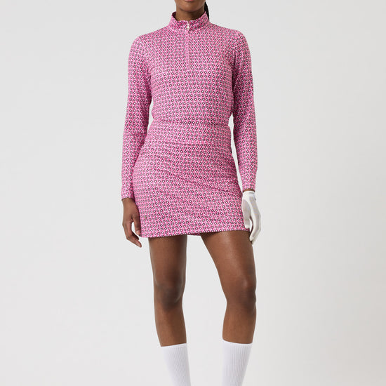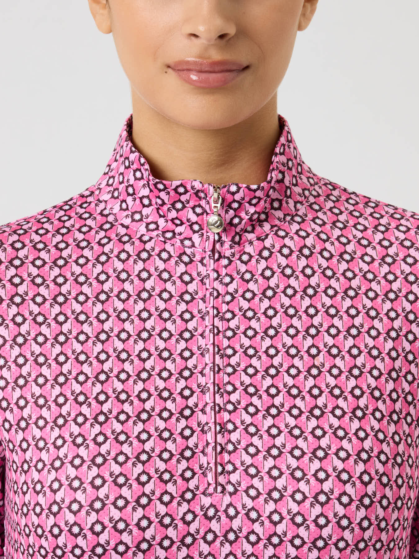 With its soft printed jersey and sporty zip collar, this long-sleeved top combines comfort with a clean, versatile look. The stretchy, quick-drying fabric has moisture-wicking properties that keep you cool and dry, making it perfect for active days.