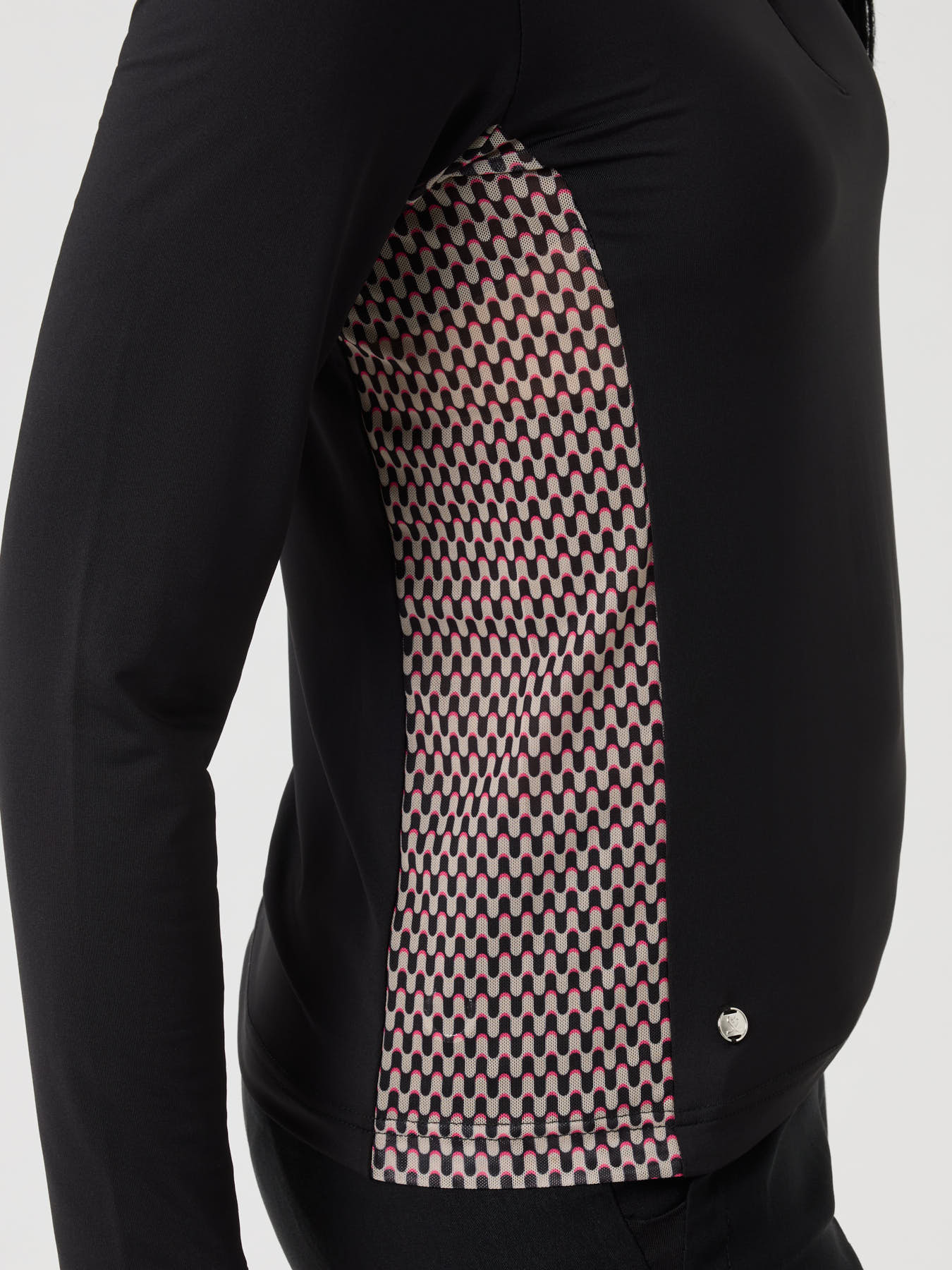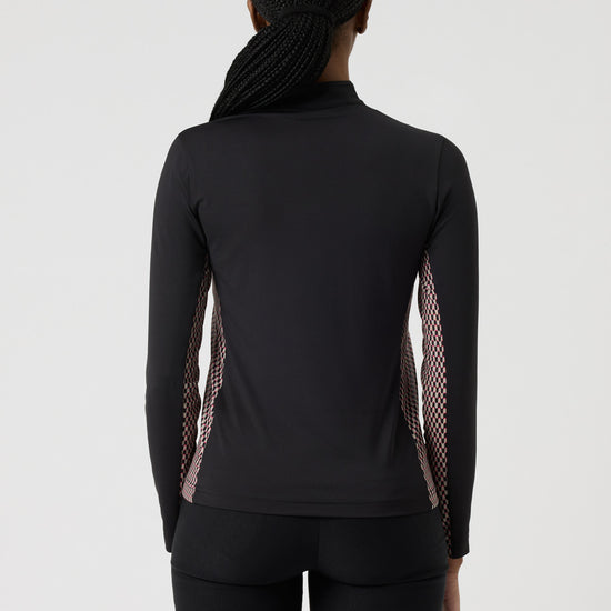 A lightweight long-sleeved top in soft, stretchy single jersey with quick-drying, moisture-wicking properties for lasting comfort. Designed with mesh panels at the sides and underarms to enhance breathability and ventilation. The half zip and stand-up collar add a sporty, modern touch, making it a versatile layer for active days on and off the course.