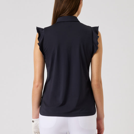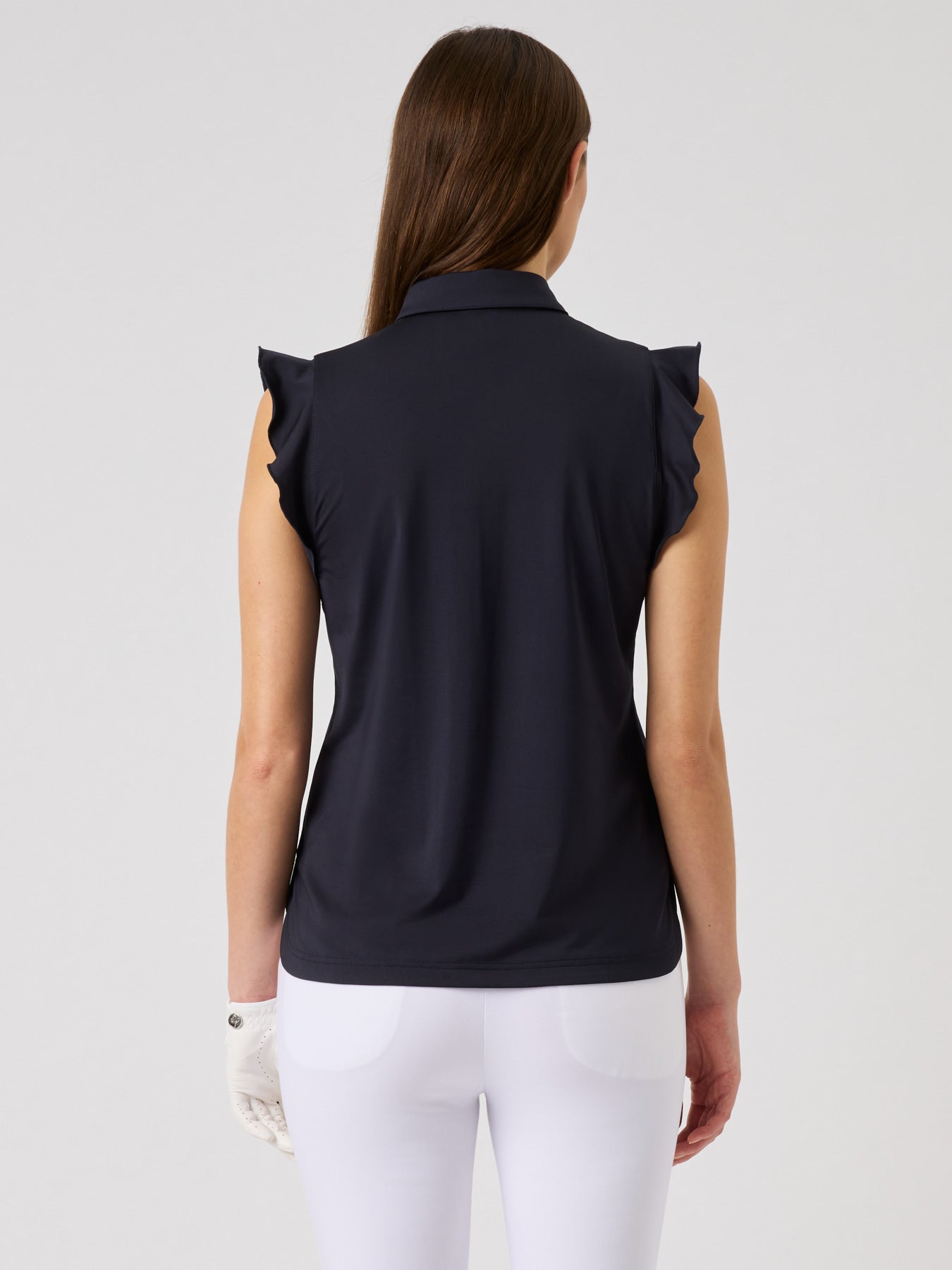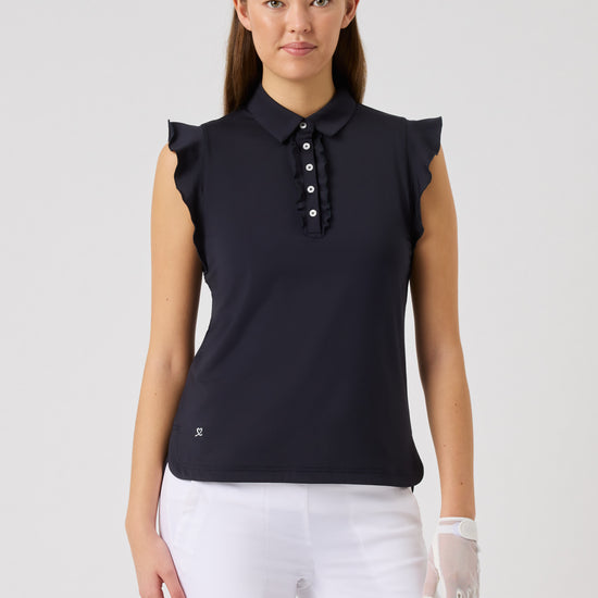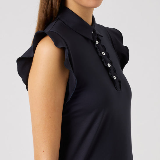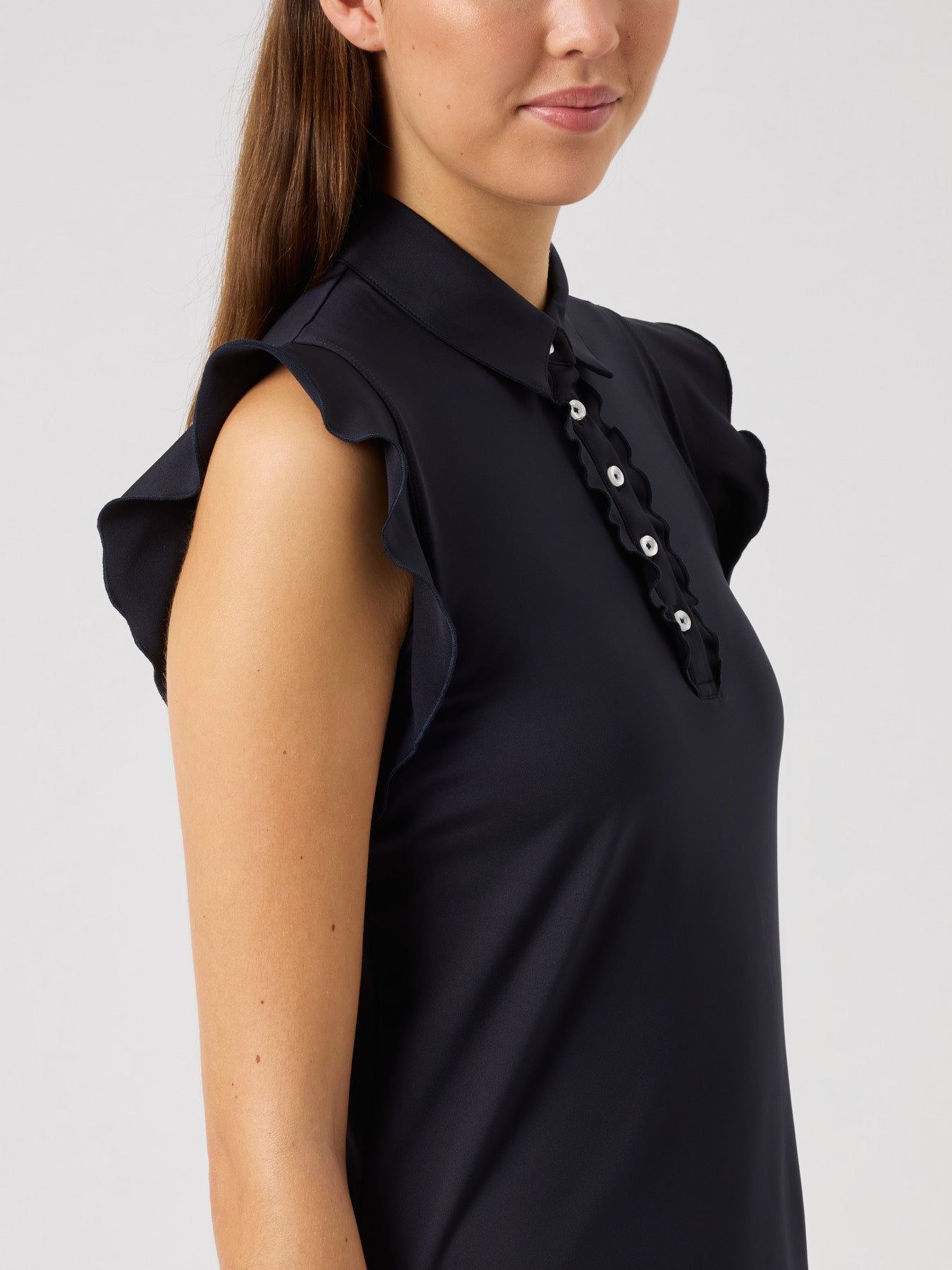 A soft, stretchy top with a subtle ruffle detail for a feminine look. Made from quick-drying, moisture-wicking fabric to keep you cool and comfortable all day long. Designed with logo buttons at the front, a rounded hem for a flattering fit and a subtle logo print above the hem.