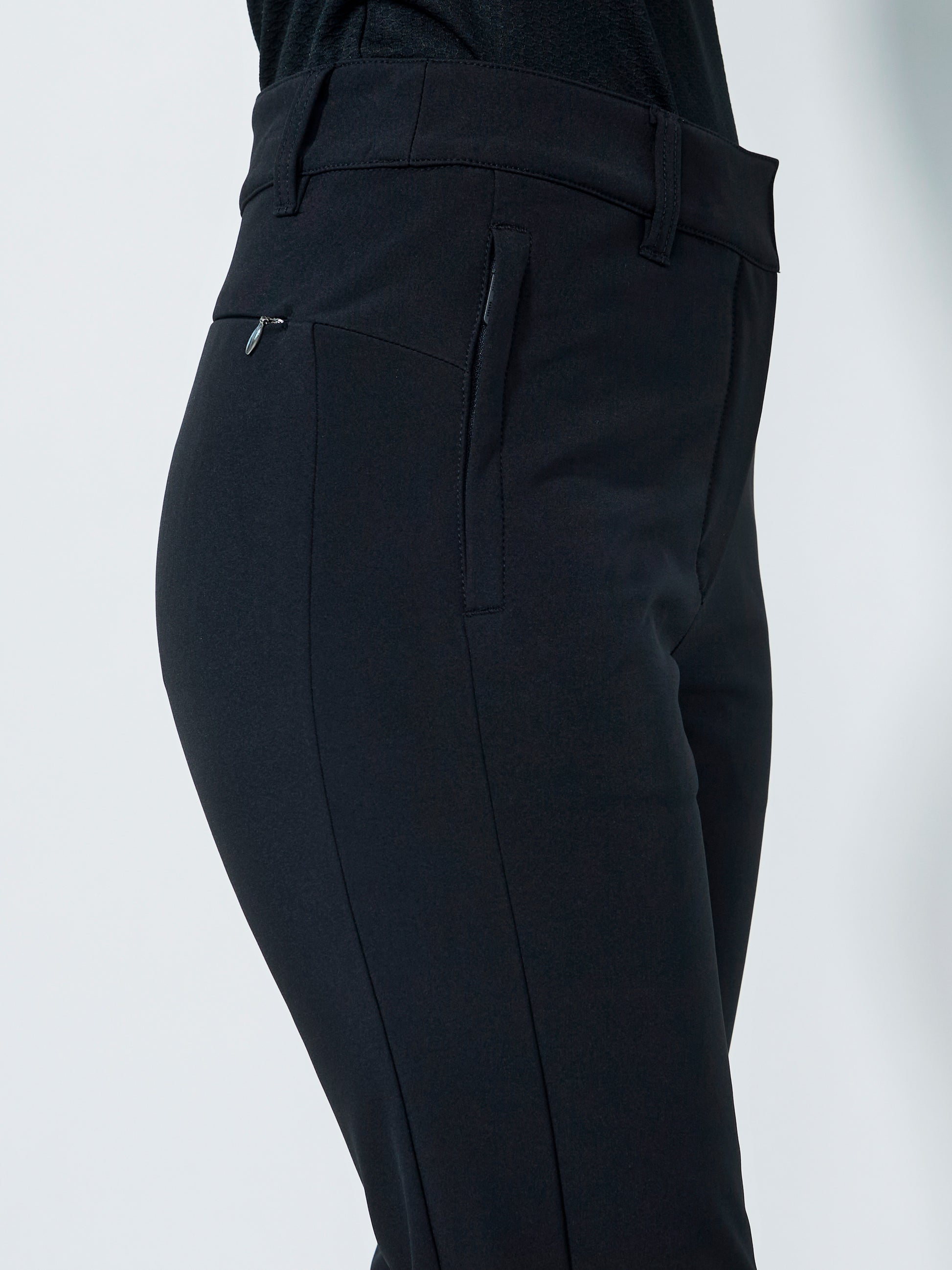 A regular-fit pant with soft peached lining, stretch comfort, and a feminine silhouette. Wind- and water-resistant, it features multiple zip pockets and wrinkle-resistant ease for everyday wear.