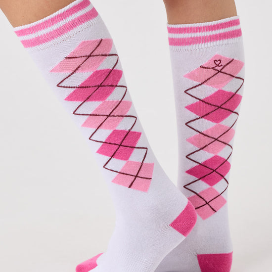 A classic knee-high sock with a jacquard-knitted argyle pattern and refined detailing. Designed with a ribbed foot for a comfortable, stay-in-place fit and a soft feel throughout the day.