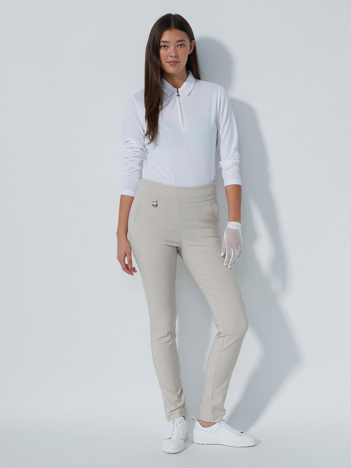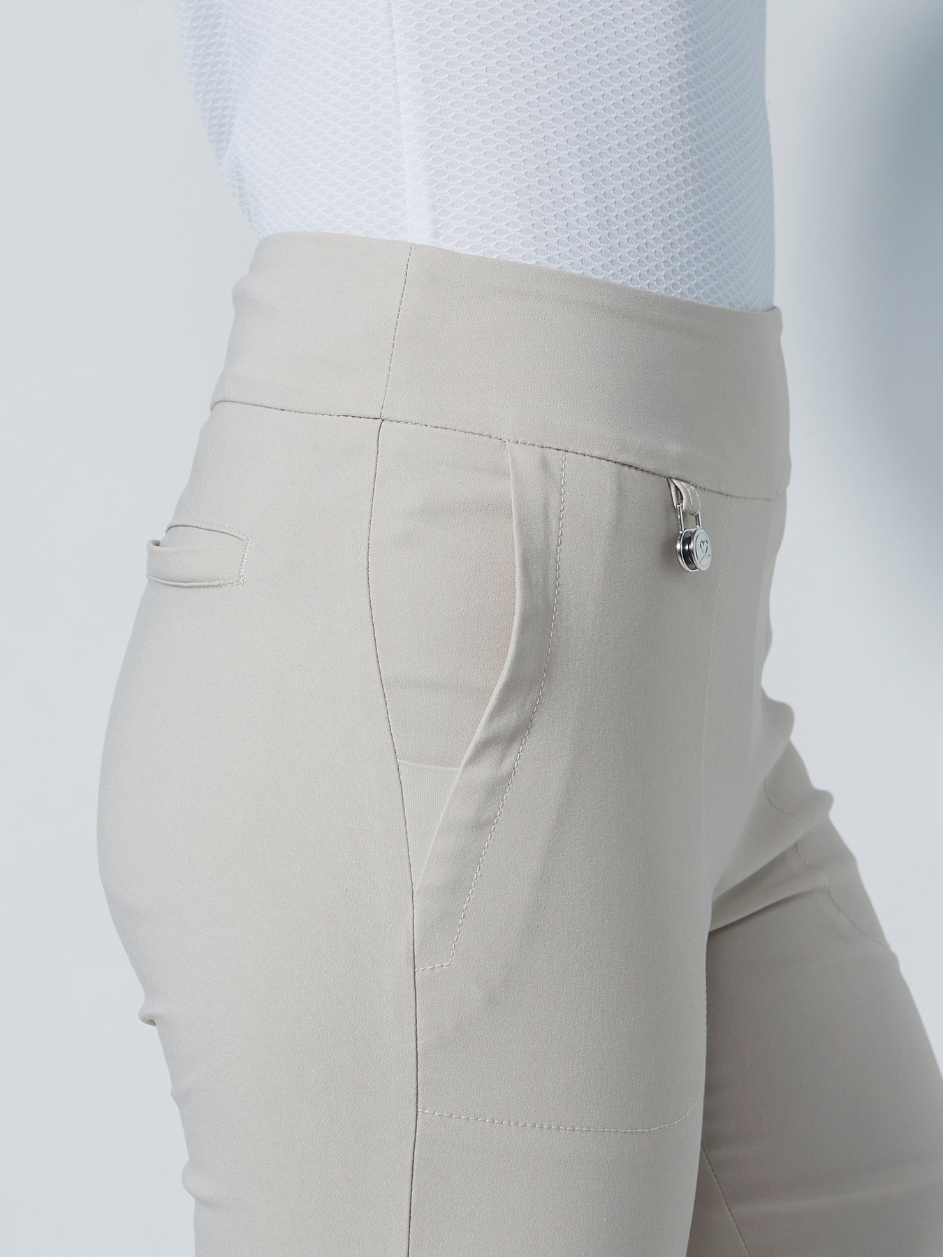 Magic High Waist pants have a snug and comfortable fit. The pants are made from super stretchy material and have a wide, soft waistband with a side zip. They also include practical details such as a ball marker, two front pockets, and two back pockets.