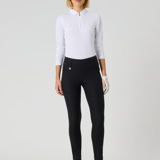Designed for unrestricted movement, the Magic Pants 29” feature super stretch fabric and a slim fit for comfort and flexibility. Designed with front slant pockets, an elastic wedge, and two back pockets, they offer practical storage without limiting movement. A functional piece both on and off the golf course.