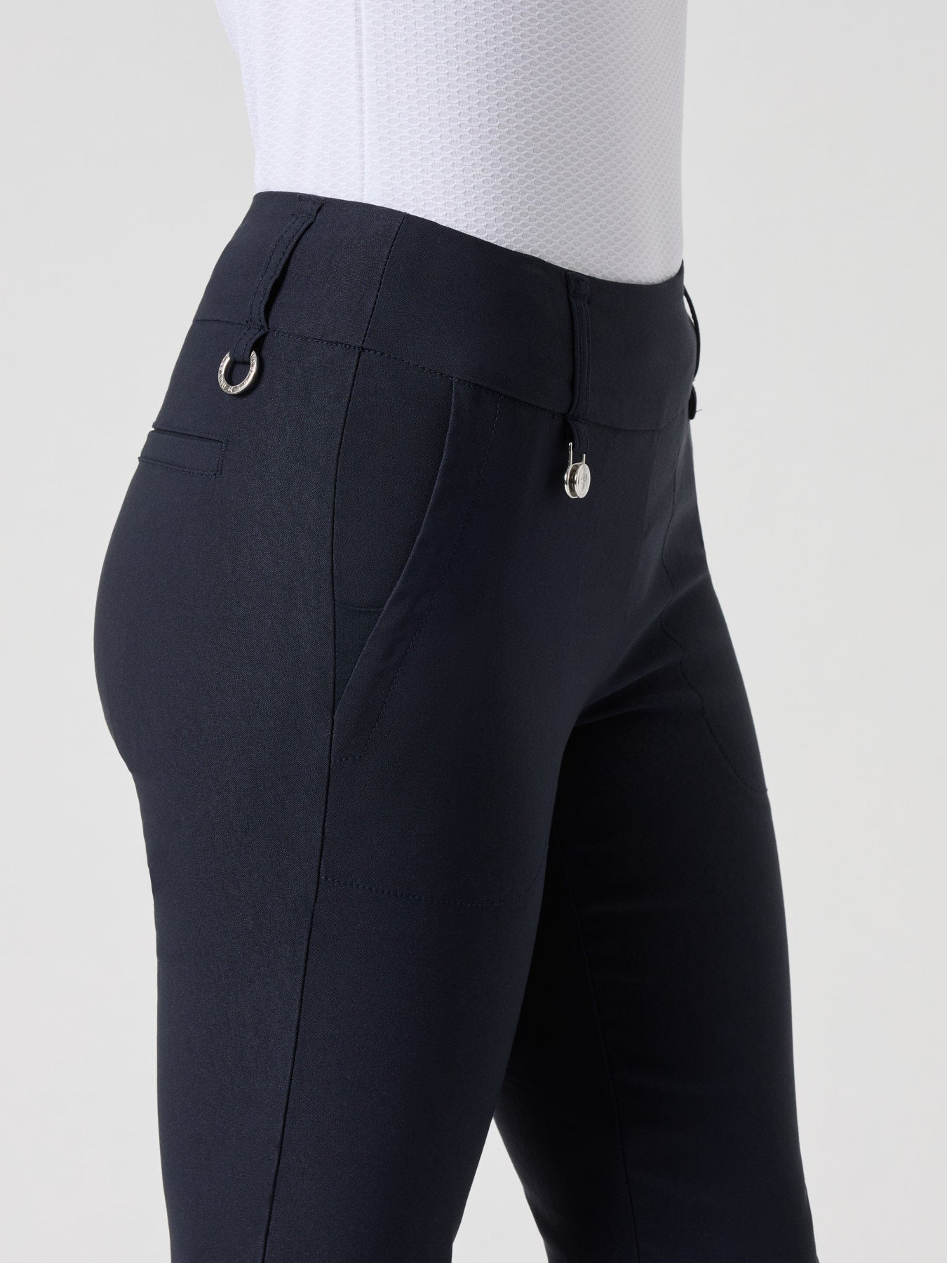 Magic golf pants 32” offer a snug yet comfortable fit thanks to the stretchy material. The wide, button-free waistband makes them easy to slip on and off. Magic also features practical details like a ball marker, two front pockets, and two back pockets.