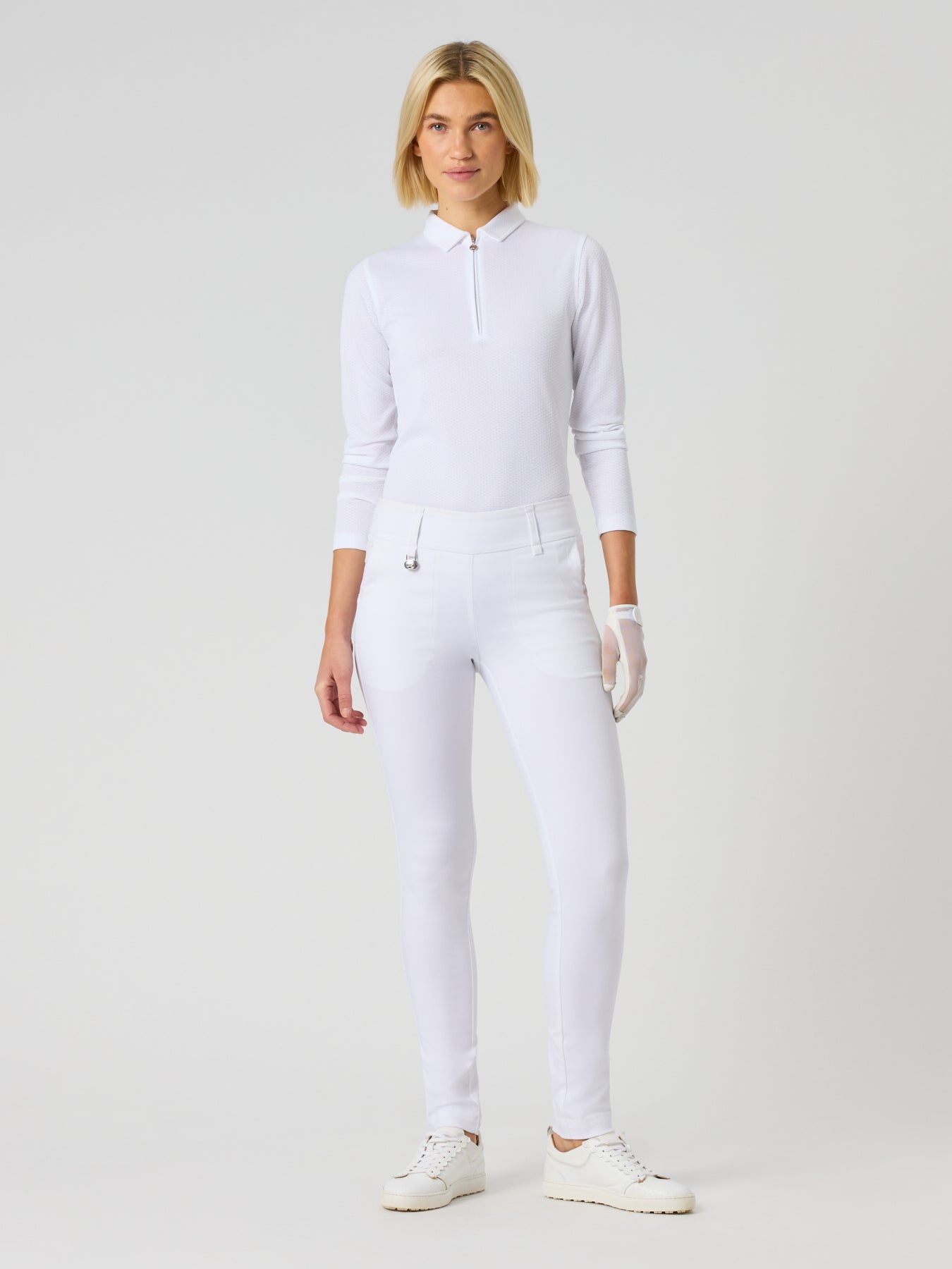 Magic golf pants 32” offer a snug yet comfortable fit thanks to the stretchy material. The wide, button-free waistband makes them easy to slip on and off. Magic also features practical details like a ball marker, two front pockets, and two back pockets.