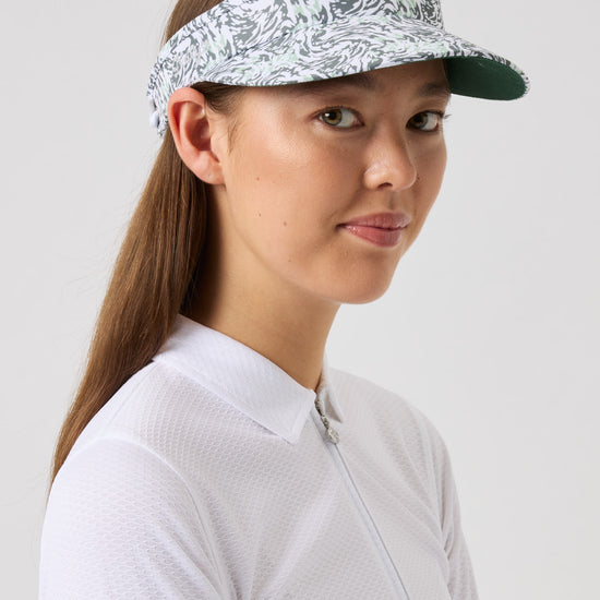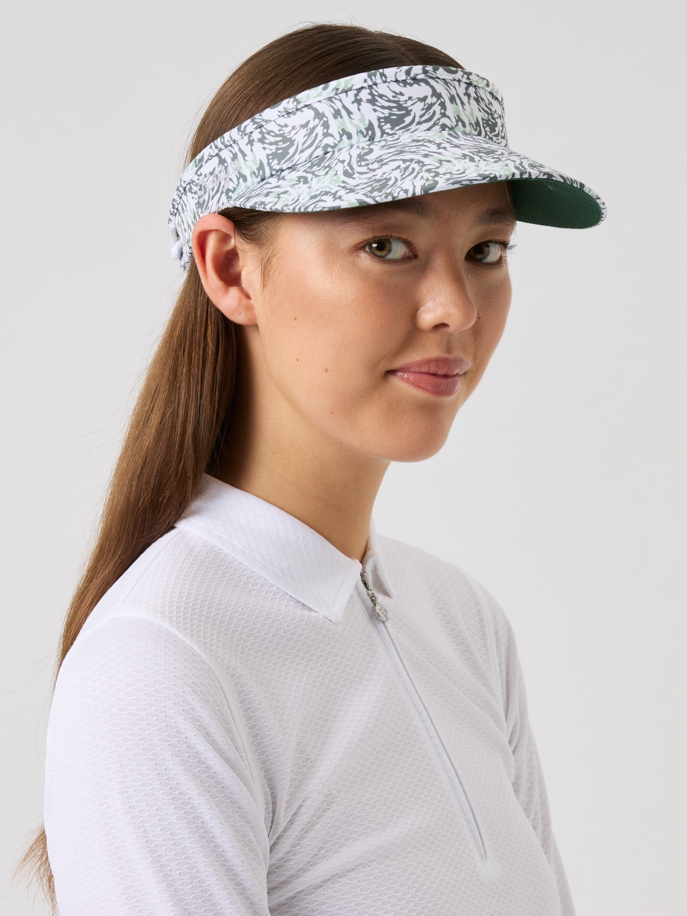 The Print visor shades the face and keeps hair in place. The underside of the visor is green for anti-glare and the soft terry cloth interior traps sweat on the forehead. Adjust the size with the adjustable elasticated strap.