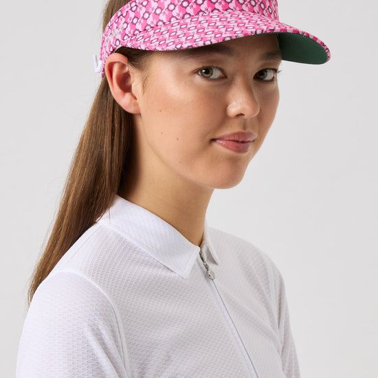 The Print visor shades the face and keeps hair in place. The underside of the visor is green for anti-glare and the soft terry cloth interior traps sweat on the forehead. Adjust the size with the adjustable elasticated strap.
