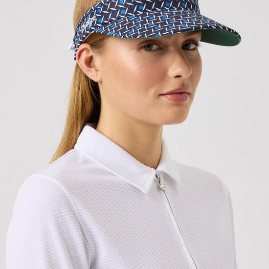 The Print visor shades the face and keeps hair in place. The underside of the visor is green for anti-glare and the soft terry cloth interior traps sweat on the forehead. Adjust the size with the adjustable elasticated strap.