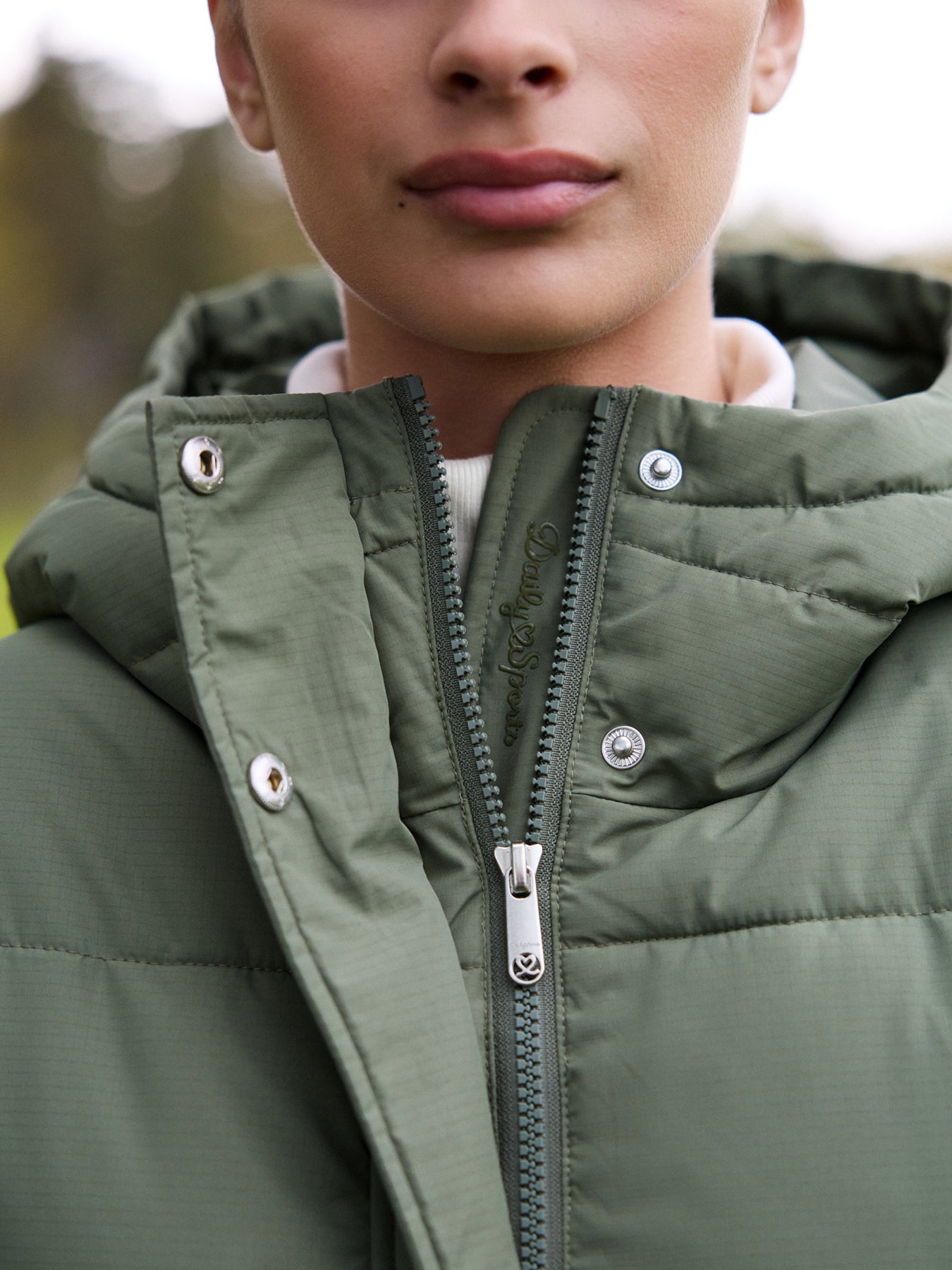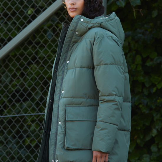 A modern puffer jacket designed for comfort and protection in unpredictable weather. Featuring a lightweight synthetic filling and oversized fit, this style offers warmth without weight. The ripstop fabric is wind- and water-repellent, while the adjustable hood and drawstring hem provide added coverage.