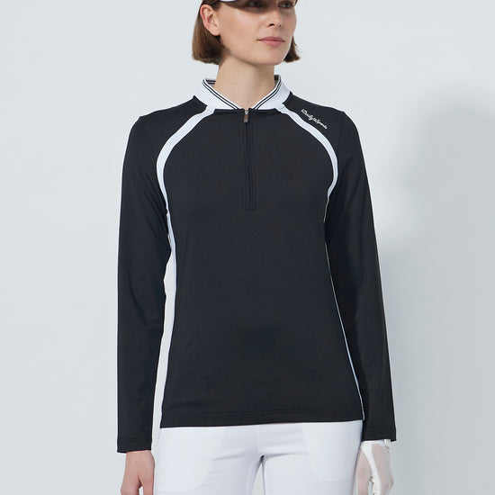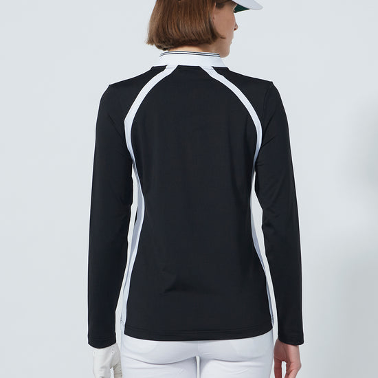 Designed in stretchy, quick-drying material, this long-sleeved top balances performance with style. The ribbed striped collar and contrasting panels highlight the sporty cut, while the moisture-wicking fabric ensures reliable comfort.