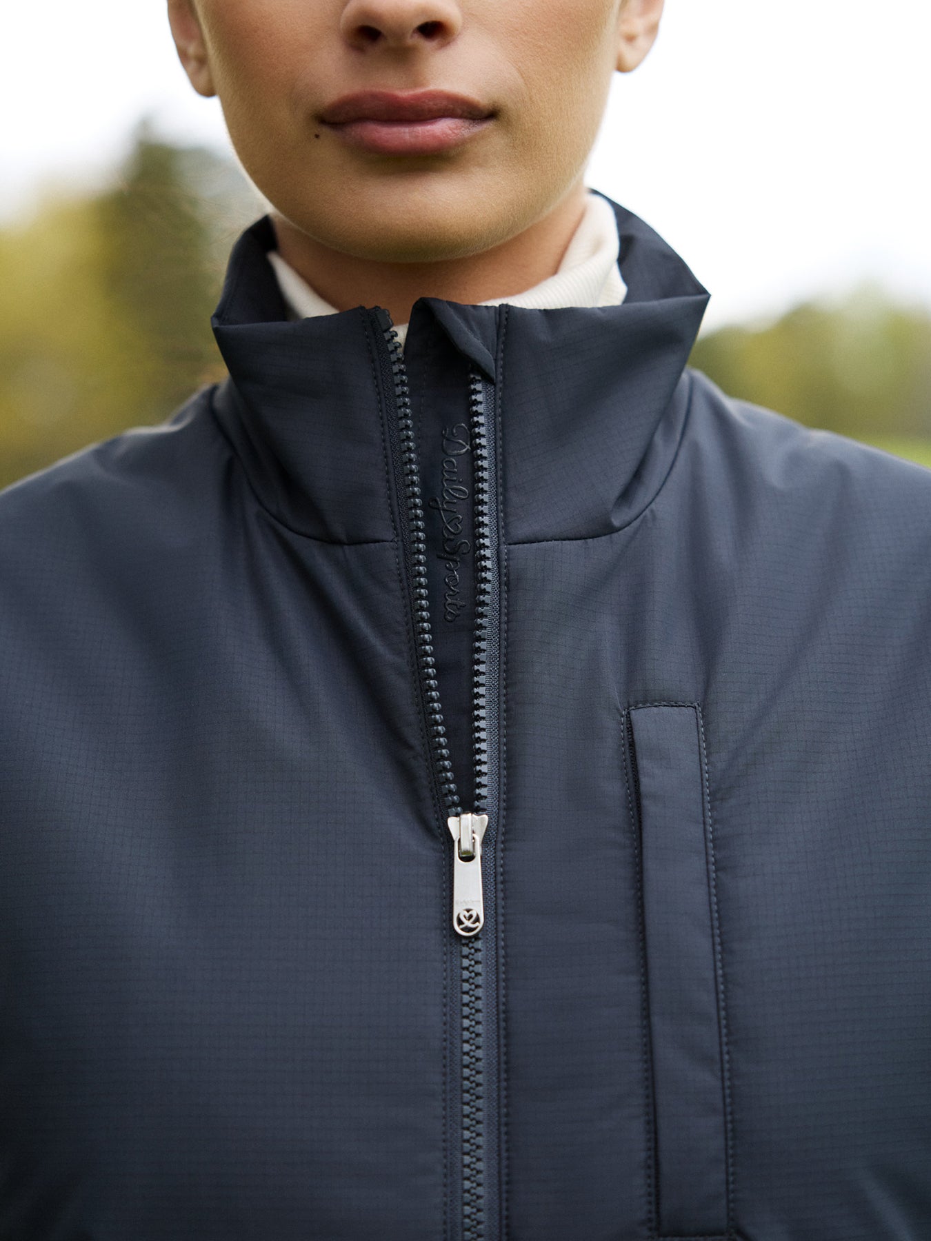 This lightweight wind vest is designed for layering and comfort. Made from wind-resistant ripstop fabric with synthetic padding for warmth, it offers breathable performance without added bulk. The two-way front zip allows for adjustable ventilation, while two zipped pockets and a discreet chest pocket keep your essentials close.