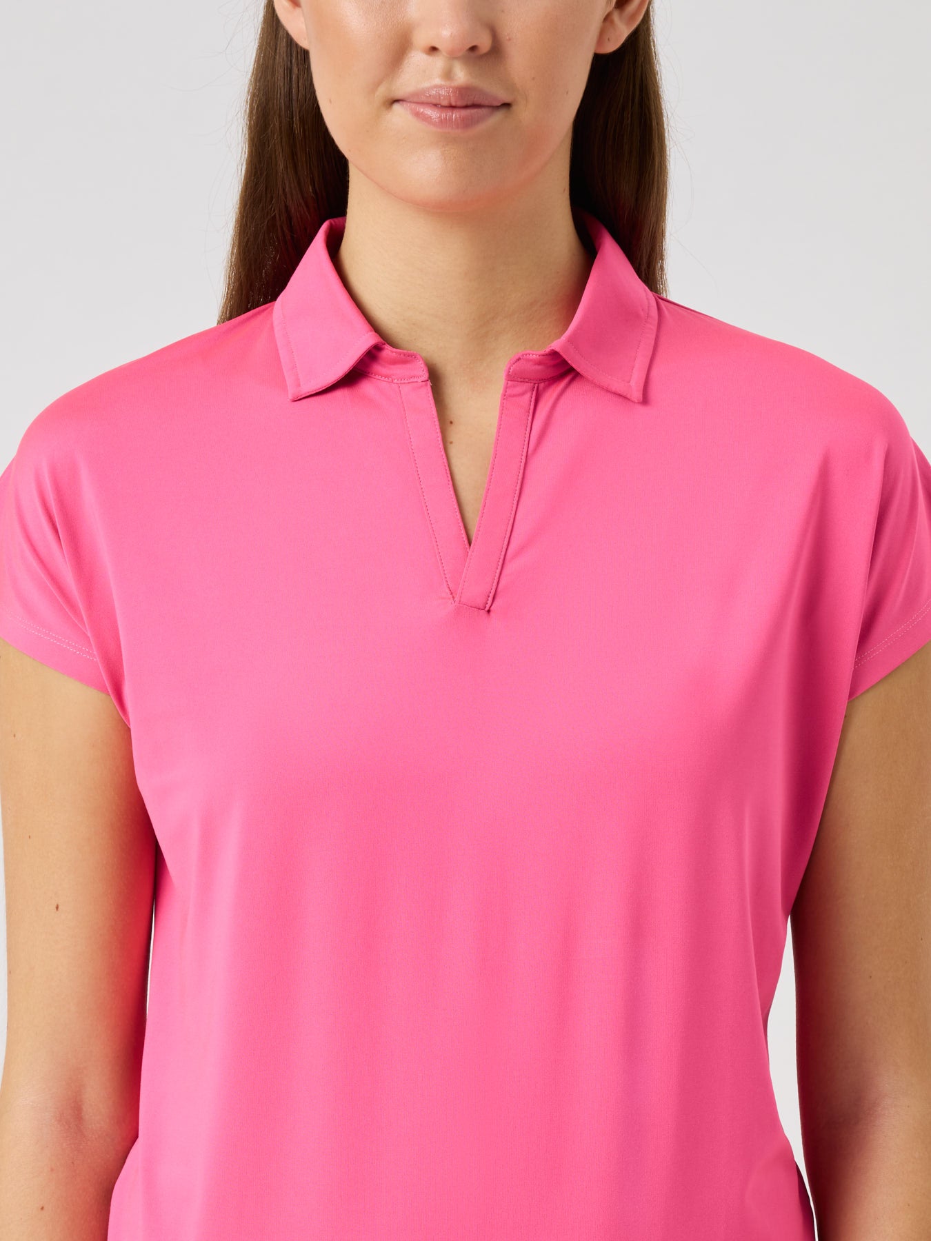 Designed for comfort and performance, the Bella Birdie Short-Sleeved Top is made from a stretch blend of polyester for breathability and freedom of movement. The quick-dry fabric keeps you cool and dry, while the cap sleeves and solid neck binding provide a secure and flexible fit, making it a versatile choice both on and off the golf course.
