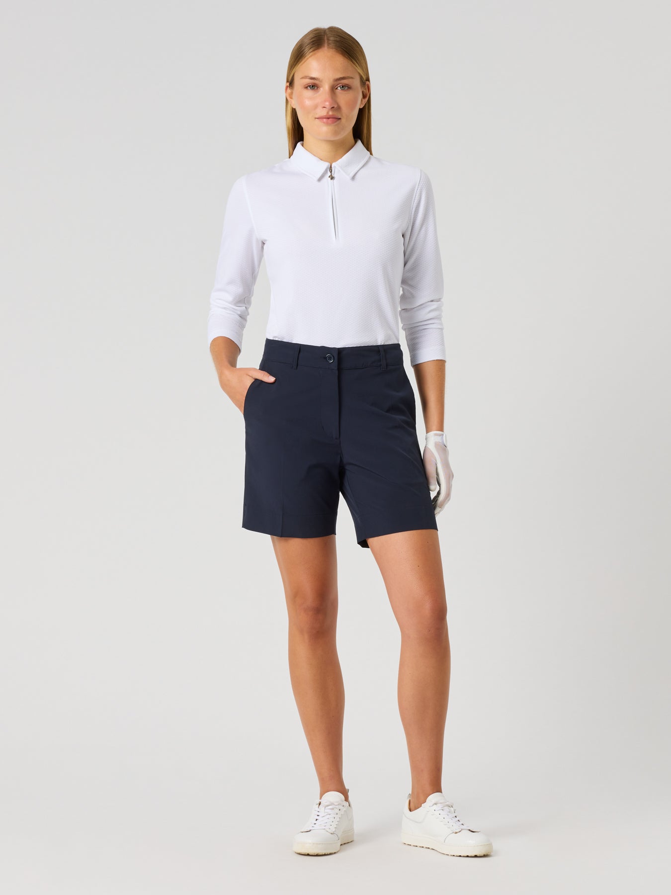 Designed for warm-weather performance, the Beyond Shorts are made from lightweight, wind-stretch fabric with quick-dry technology to keep you cool and comfortable. Crafted from recycled polyester, they provide flexibility and breathability, making them a functional choice both on and off the course.