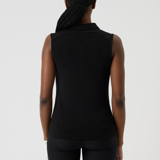 Soft single jersey with a subtle lurex shimmer gives this sleeveless polo a refined, feminine feel. The quick-drying, moisture-wicking fabric keeps you cool and comfortable throughout the day. Designed with piping along the shoulder yoke for a clean, sporty look and finished with logo buttons at the front.