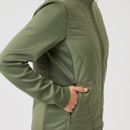 The Flex Padded Golf Jacket delivers lightweight warmth and weather protection. Featuring synthetic down padding at the front and back, it offers wind- and water-repellent performance without bulk. The stretch fabric enhance breathability, making it an ideal layering piece for outdoor activities.