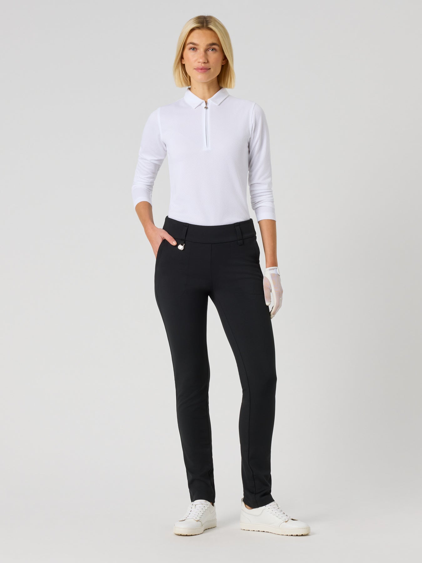 Magic Warm trousers have the same stylish look and comfortable fit as other Magic trousers but with a slightly more relaxed fit. They are stretchy with a soft, brushed inside. The wide waistband with no buttons makes them easy to get on and off, and they also feature practical details like a ball marker and two pockets both front and back.