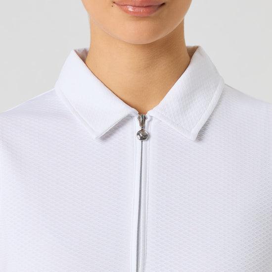 Peoria is a sleeveless top in a sophisticated design with a neat collar, a zip and a slightly cinched waist. The top is made from recycled material where the jacquard knit fabric adds structure and creates a sporty look. The material also regulates heat and wicks away moisture.