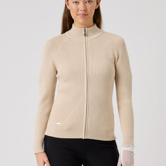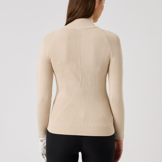 Rib är en stilren golftröja i ribbad design. Den höga kragen ger extra värme vilket gör tröjan till ett perfekt val för svalare dagar på golfbanan.