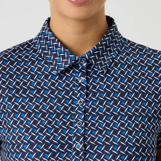 Sheermotion is a short-sleeved golf top designed for style and movement, made from soft stretch jersey for flexibility and comfort. Quick Dry fabric keeps you cool and dry, while the clean collar and all-over print design give a modern look.