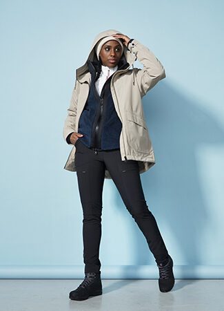 Annecy outdoor pants are just as functional in the forest as they are smart in the city. They are tailored, made from a stretch fabric. They feature practical details like waistband drawstring and well-placed practical pockets. They are warm and easy-wear, with a wind- and water repellent four-way stretch fabric at the front and a soft finish to the back inside.