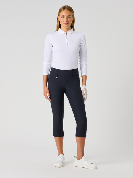 Discover our tailored-fit women's capri golf pants in the latest season’s colors and patterns, as well as classic timeless shades like black, white, and navy. The capri pants are available in two of our classic models: Magic, a pull-on pant with an attached ball marker, and Lyric, a wrinkle-free and fast-drying pant. Our capri pants are thoughtfully crafted with both style and comfort in mind, featuring functional details such as pockets placed just where you need them. Discover our complete collection of golf bottoms, including